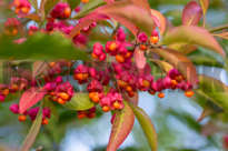 - Euonymus alatus (Vinget Benved): Kendt for sine vingede grene, der bliver spektakulært røde om efteråret.