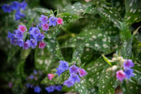- Pulmonaria longifolia (Langbladet lungeurt): Med langstrakte, plettede blade og blomster i nuancer af blåt og lilla.