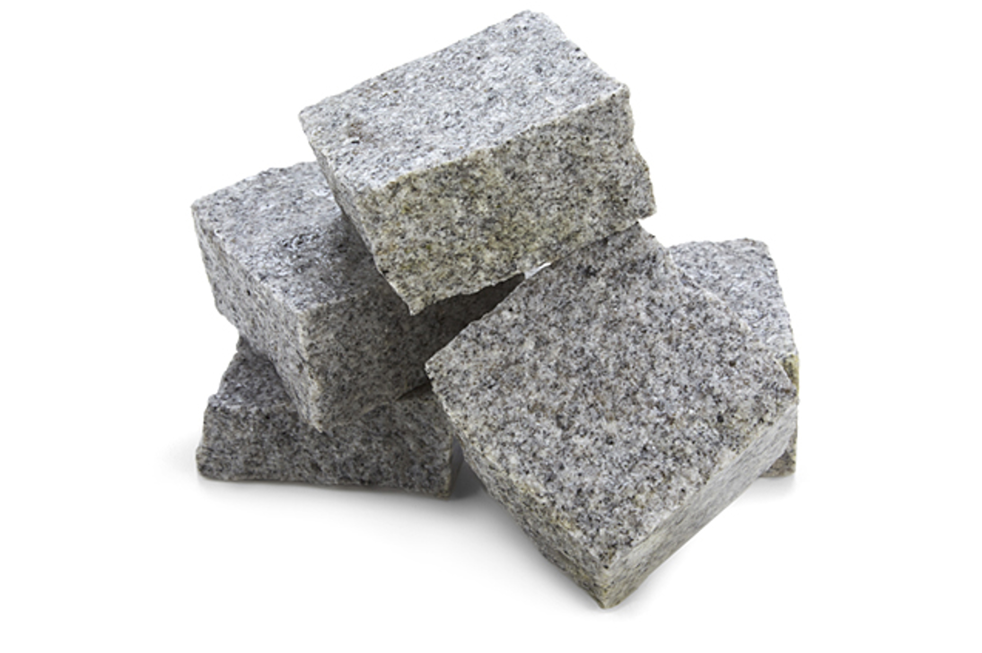En chaussesten, som måler 9 x 9 x 9 cm, vejer 2-2,5 kg.