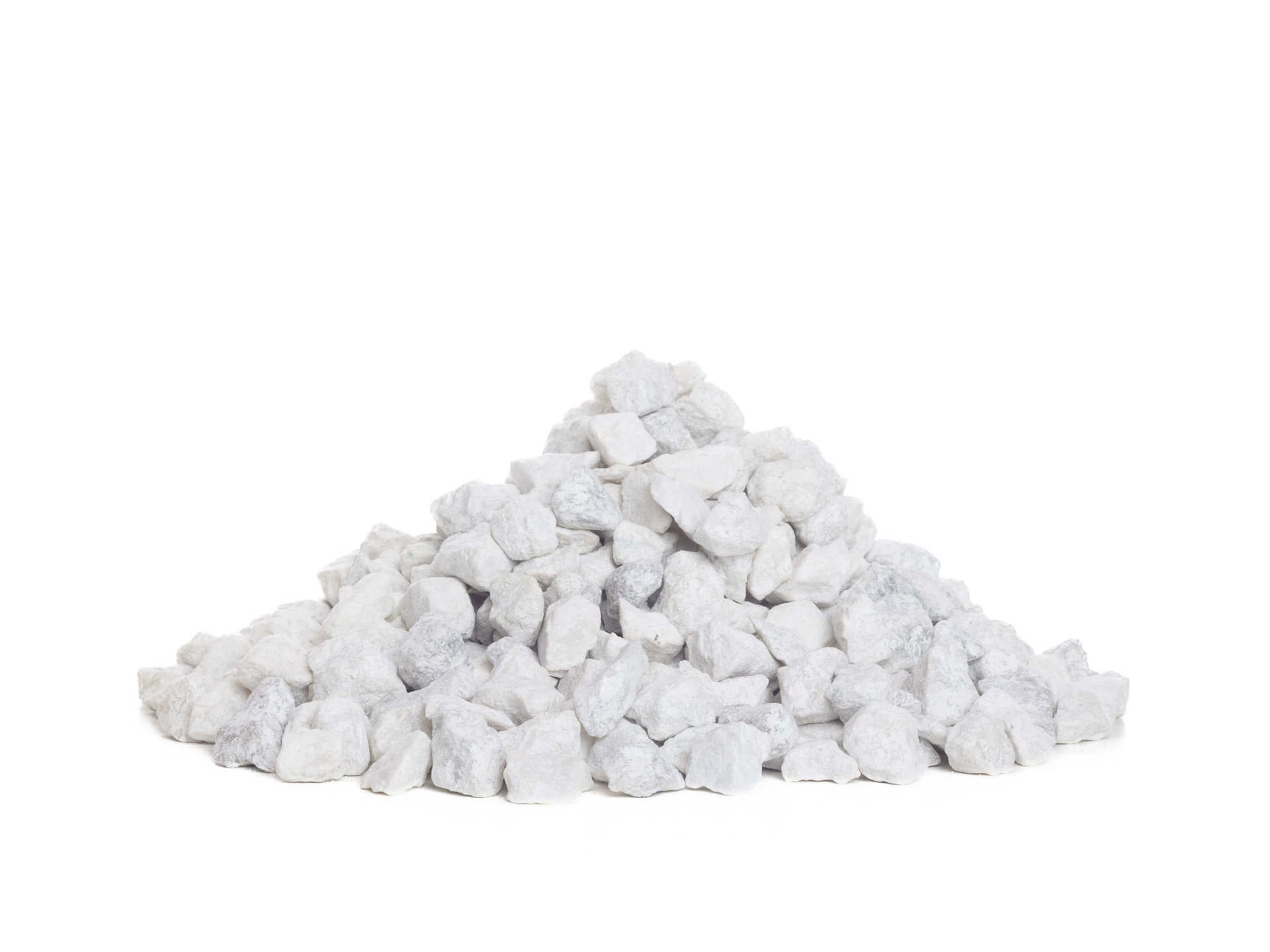 For this size of white granite chippings, we recommend laying a 5 cm layer. This means that 1 m³ covers 20 m². Especially in a driveway, it's important not to make the layer thicker, as cars could get stuck. It's important to cover the ground, but there's no need to add more than necessary. The angular stones will pack together to create a solid surface.