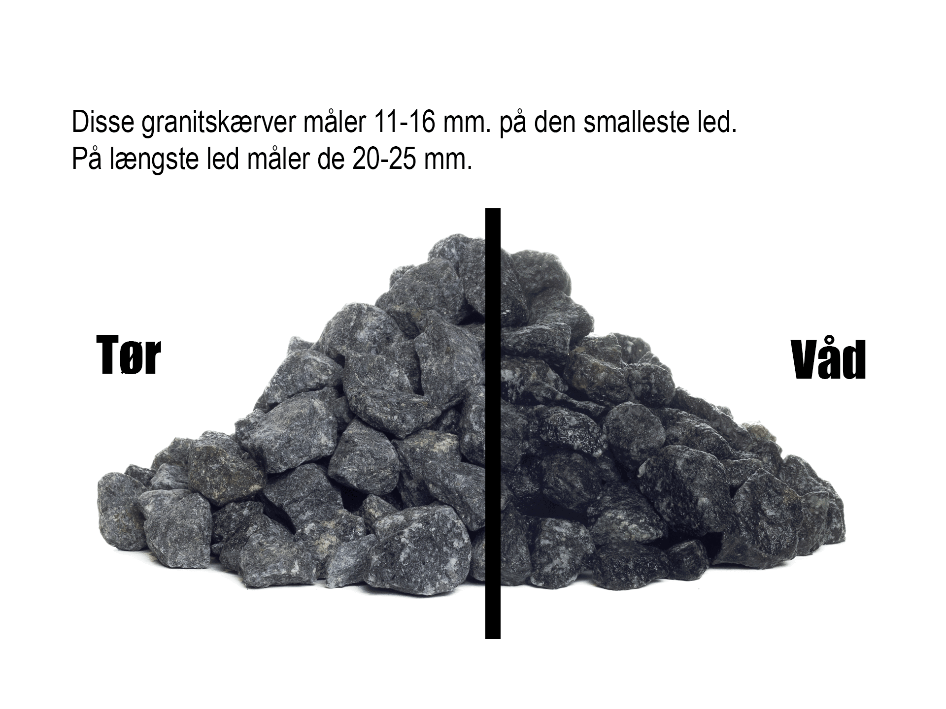 Vi tilbyder to forskellige typer af granitskærver sort 11-16 mm.