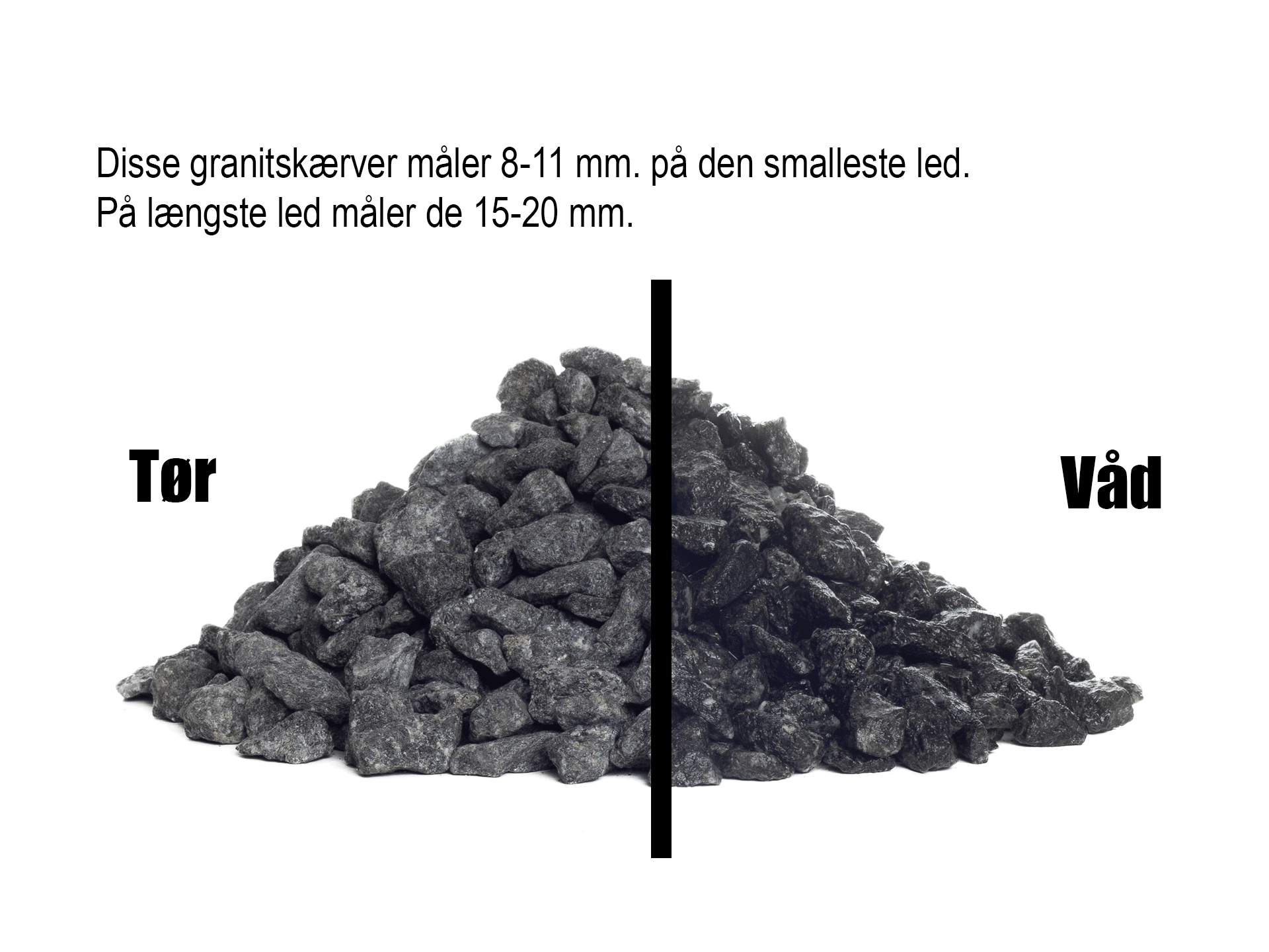 - Sorte granitskærver 8-11 mm.