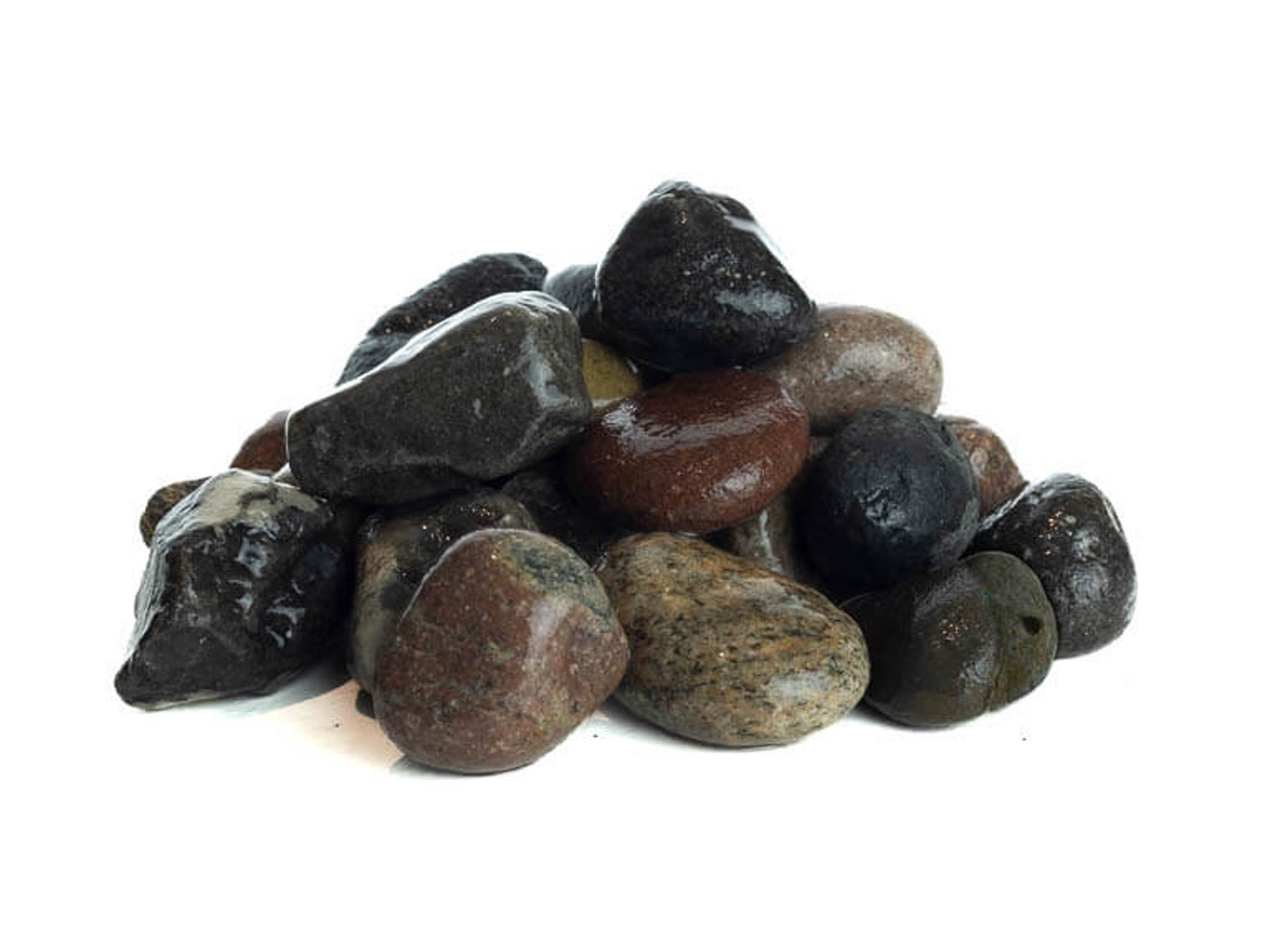Denne stentype er helt særlig, og virkelig flot til bedet, hvor man ønsker en mørk varm farve, og samtidig en sten som er utrolig flot i både våd og tør tilstand (se billeder). Stenene er meget runde. En stor del næsten som en bold, hvilket er meget atypisk men utrolig smukt. Den særlige form skyldes, at den er pumpet op fra over 50 meters dybde, og den særlige farve og størrelse findes kun ét enkelt sted i Danmark. Derfor er vi meget stolte af, at have denne sten i vores sortiment.