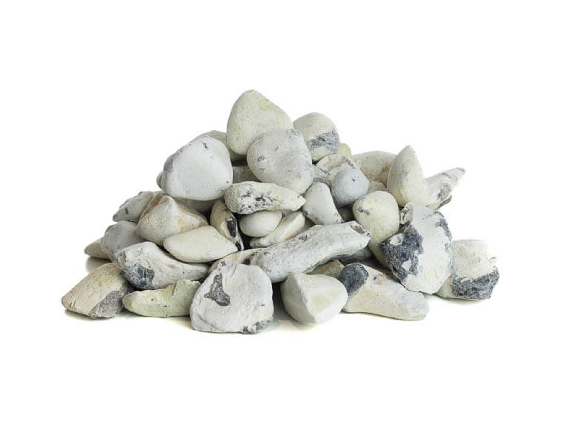 Det er den store mængde af kalksten der giver den utrolig lyse farve i denne blanding. Udover at det er utrolig lyst og flot, giver det også en god mulighed for at skabe skarpe kontraster i haven, hvilket er meget populært. Den hvide farve står godt til næsten alt, og sammen med en grå eller mørkegrå flise, vil den stå knivskarpt, og samtidig bringe de runde strandformer ind i haven eller havegangen. Kalksten suger i øvrigt lynhurtigt væske - derfor er disse sten ganske kort tid om at tørre, hvilket gør, at de næsten året rundt har det flotte lyse look.